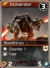 Incinerator was introduced to Tyrant players as a promotional card in version 1.5.30. Currently, it is available to Tyrant players through the Promo Card Vault only.