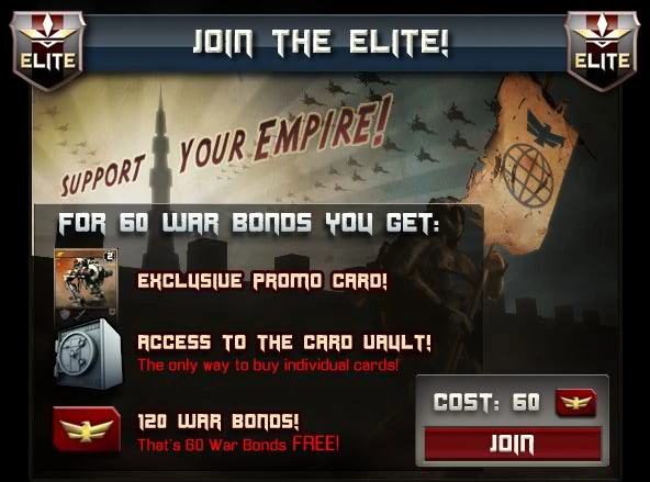 - Promotional Cards that are available in the News page can be found in the Elite Vault as well. Note that those Promotional Cards of the Rare quality cost 20