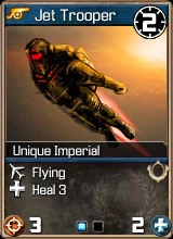 . The upgraded card is mucch more powerful than it's previous form. For example, the card Jet Trooper normally has 2 Health, 3 Attack, 2 Wait, Flying and Heal 3. However, the uprgaded card has 5 Health, 3 Attack, 2 Wait, Flying, Heal 3, Jam.